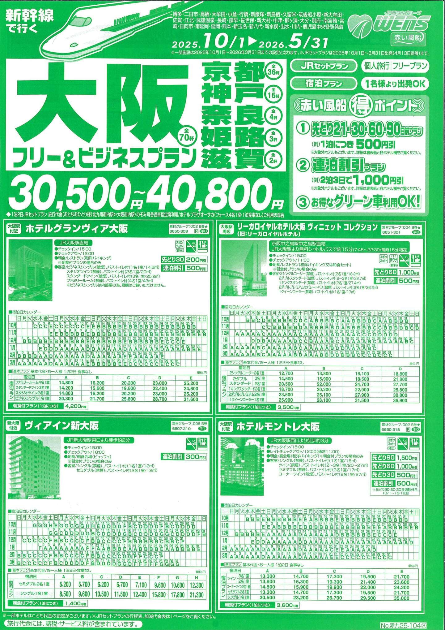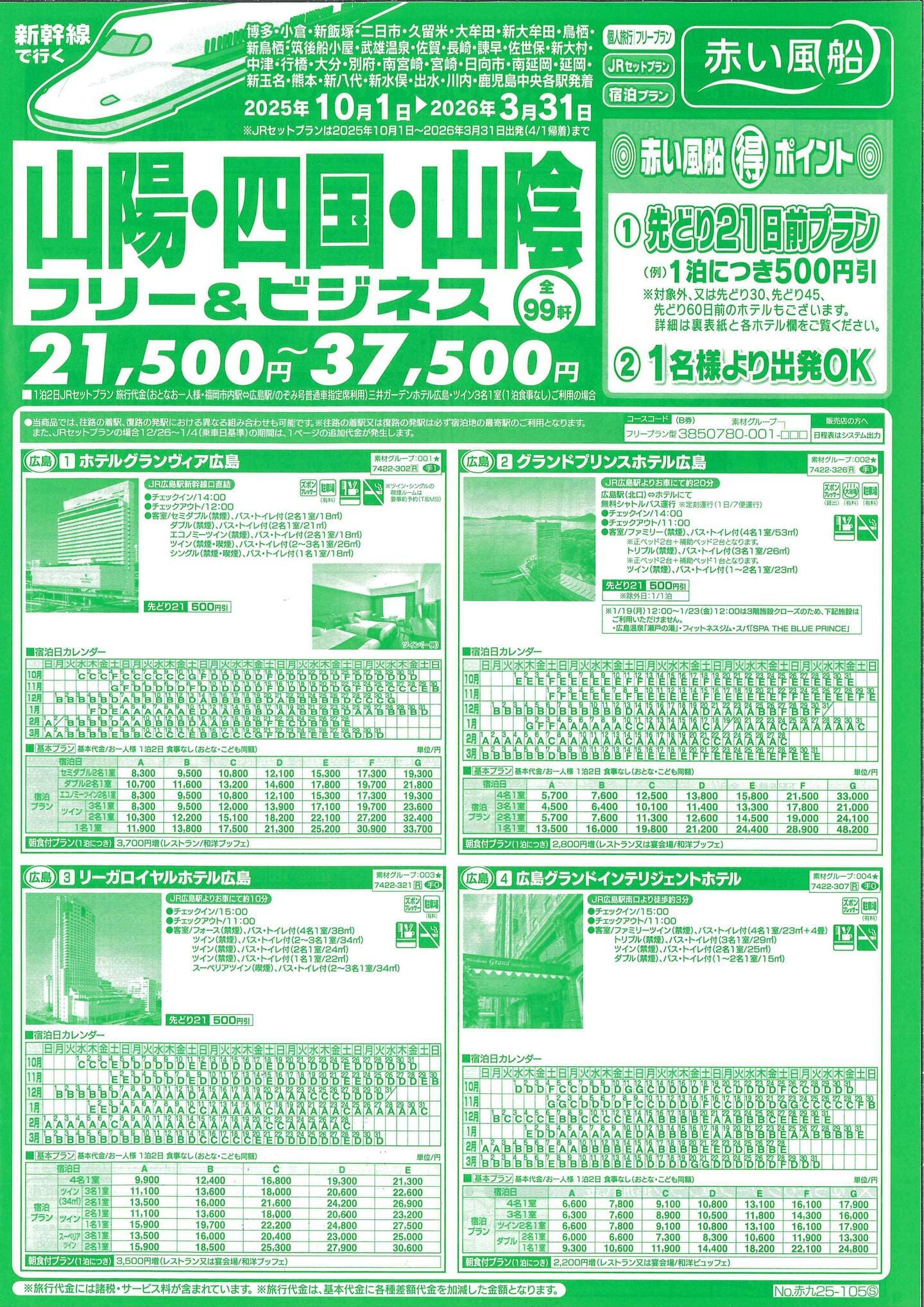 特に人気のあるパンフレットを載せております。このほか期間限定の格安パックなどの取り扱いもござい ますのでお気軽にお問い合わせください。